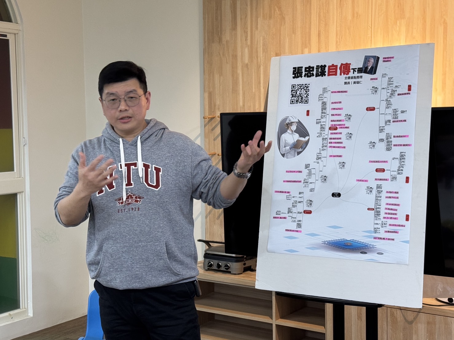 2/26下班後晚上七點,ㄧ群就讀台大畢業校友和現職就讀的高階經理人一起在新竹市東區紐約國際幼兒園舉辦[張忠謀自傳下集]的讀書會,