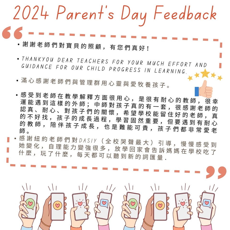 感謝各位日前蒞臨<紐約國際>113學年度-家說會,相信透過管理/行政/教學團隊的分享,我們確實傳遞了NYIS對幼教的堅持,以及2024設定的教學目標。
